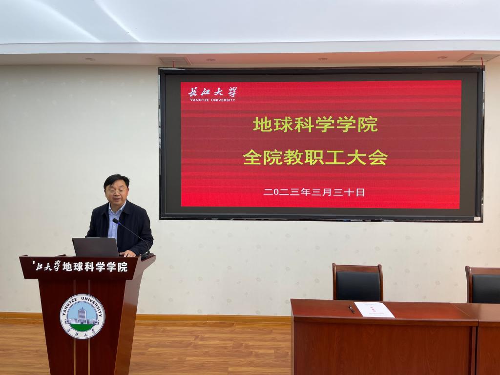 (通讯员 尚成)3月30日下午,必赢官网在石油科技大楼C301室召开了全院教职工大会。安排和部署学院近期重点工作,各系(中心)主任对2022年度工作完成情况进行述职,并签订2023年目标任务书,会议由院长胡明毅主持。