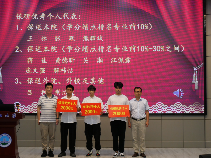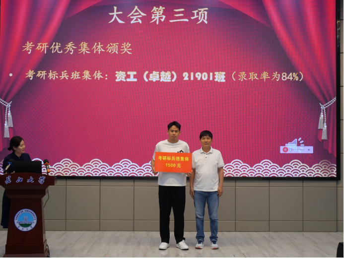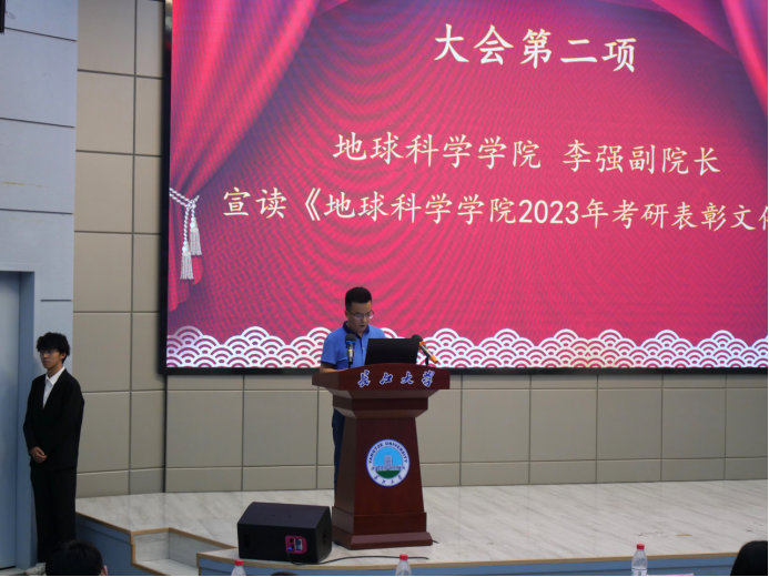 会议在隆重的国歌声中拉开帷幕。副院长李强宣读《必赢242net官网2023年考研表彰文件》,1个考研标兵班级、6个标兵宿舍、2个标兵个人,和43名优秀个人依次上台领奖。