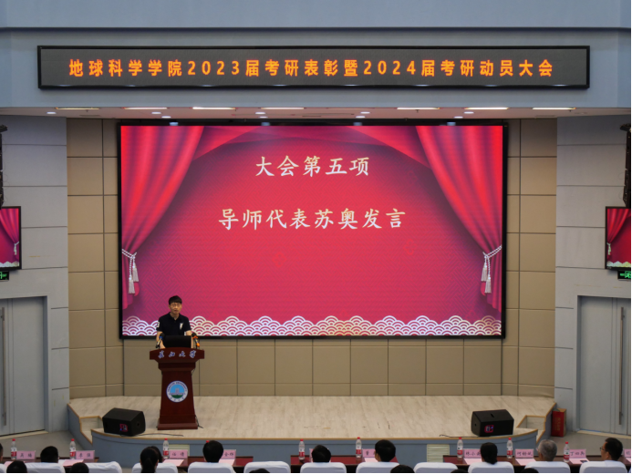 2020级研究生代表张广斌发言,他认为在长大读研是人生最正确的选择之一,导师和学院指导与培养让他硕果累累。导师代表苏奥博士鼓励大家:“考研的路上,可能会遇到各种各样的困难和挑战。只要有梦想有决心,就一定会战胜这些困难和挑战。”副院长吴楠教授为同学们分析了2024年考研局势,勉励大家要更加自律、进一步明确发展方向,做好时间规划。