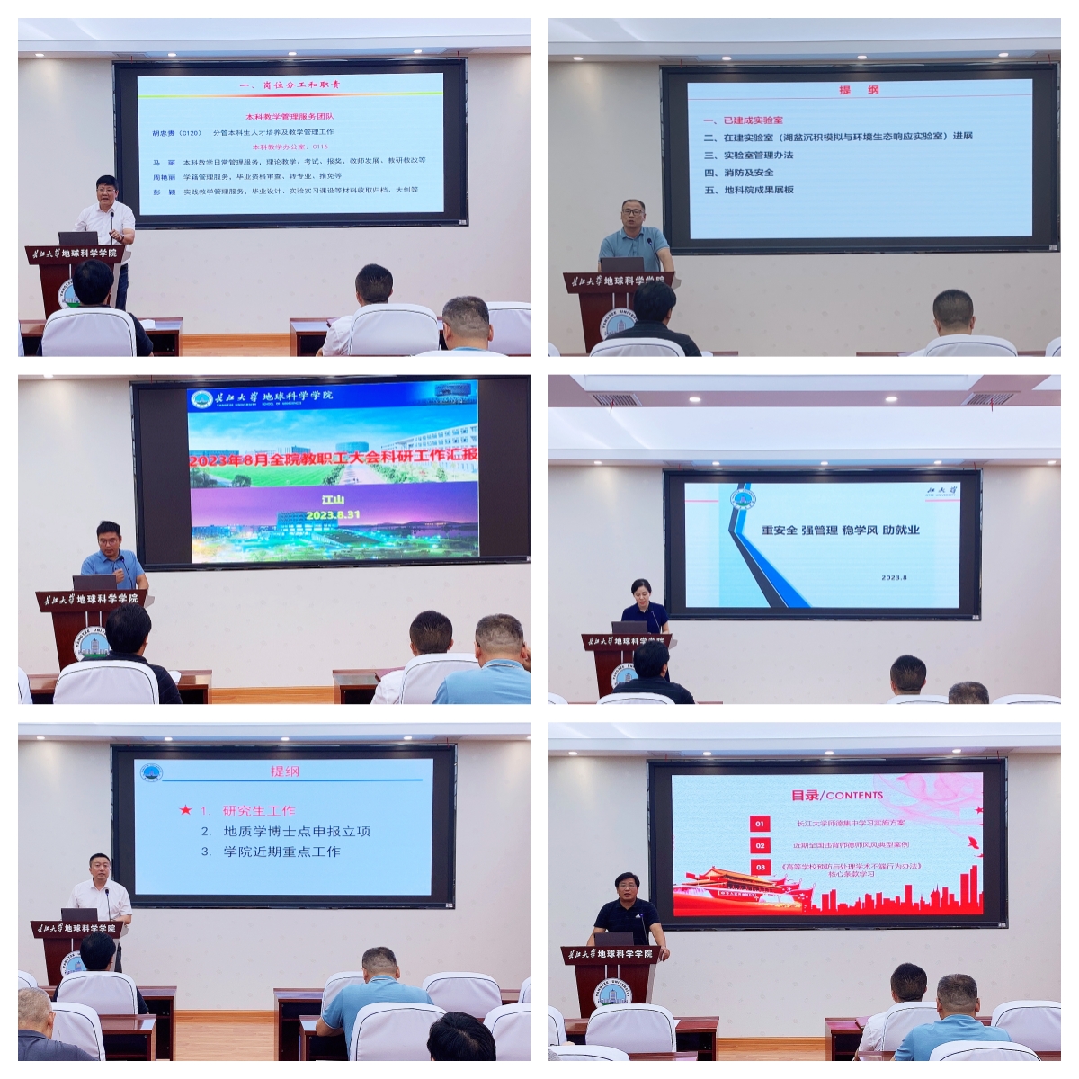 副院长吴楠就2024研招报名、研究生毕业论文送审方式、地质学博士点申报等方面的工作进行安排。针对本学期重点工作,吴楠强调,新班子要有新气象,学院领导班子必须精诚团结,接好接力棒,跑好接力赛,要按照“更加开放、更加融合、更加积极、更加高效”的理念推进各项工作,全院教师应凝聚共识,树立危机意识,全体师生员工要时时对标对表,确保高标准完成全年既定目标任务,以实际行动和优异成绩庆祝学校合并组建20周年,全力推动学校各项事业高质量发展,为加快推进高水平大学建设作出新的更大贡献。