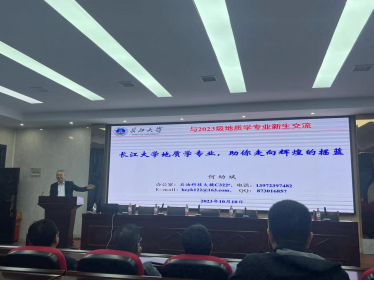 随后,由何幼斌教授做专业思政教育报告。何教授从地质学专业优秀校友谈起,结合自身经历给同学们展示了在学习地质中的乐趣,同时还讲述了地质学“大师”们的家国情怀,为同学们树立了学习的榜样,指明了前进的方向。