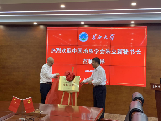交流会后,校长刘勇胜与中国地质学会秘书长朱立新共同举行了创新基地揭牌仪式。