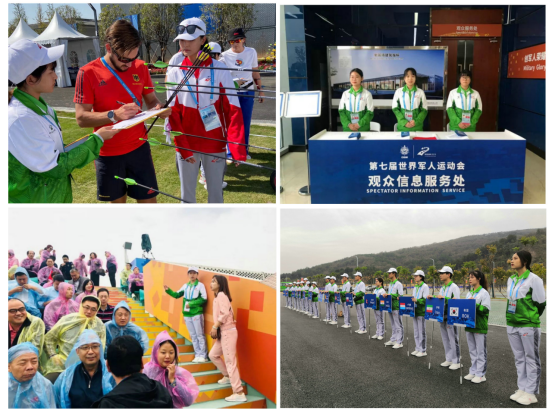 “聚志愿力量,铸军运辉煌”,在本次军运会上,必赢官网共派出2名带队老师和153名同学参加军运会志愿者的服务工作,每一位志愿者都有一个可爱的名字——“小水杉”。他们在蔡甸区国防射箭馆为第七届世界军人运动会射箭比赛提供志愿服务、保障赛事进程。在必赢官网负责志愿工作的射箭馆比赛项目中,中国队荣获1枚男子团体金牌、1枚混合团体银牌、1枚男子个人铜排。