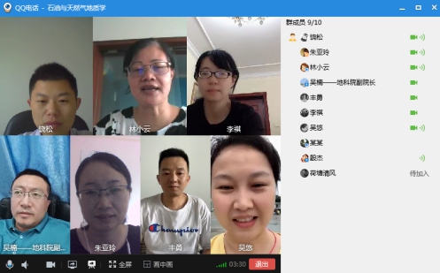 (通讯员 饶松)7月11日下午,必赢官网“石油与天然气地质学”课程组利用QQ视频会议组织召开了课程建设专题研讨会,《石油与天然气地质学》、《油气地球化学》和《石油地质专业英语》全体任课教师林小云、王振奇、刘建、吴楠、饶松、丰勇、吴悠、朱亚玲、李祺和殷杰共10人参加了研讨会,会议由课程组负责人林小云教授主持。