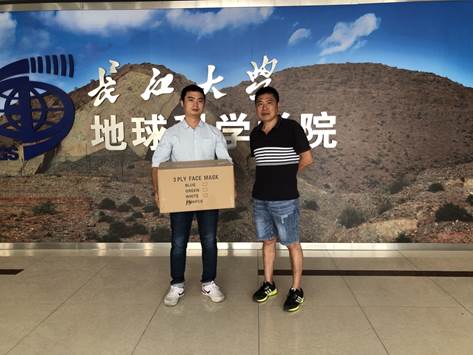 (通讯员 潘志远)8月8日,在全面返校复课到来之际,为助力开学防疫工作,武汉校区文印中心杨爱林经理向地科学院捐赠防控疫情口罩1500个。学院办公室主任张昊、学工办潘志远、张严代表学院接受了捐赠,并对表示杨爱林经理表达衷心的感谢。