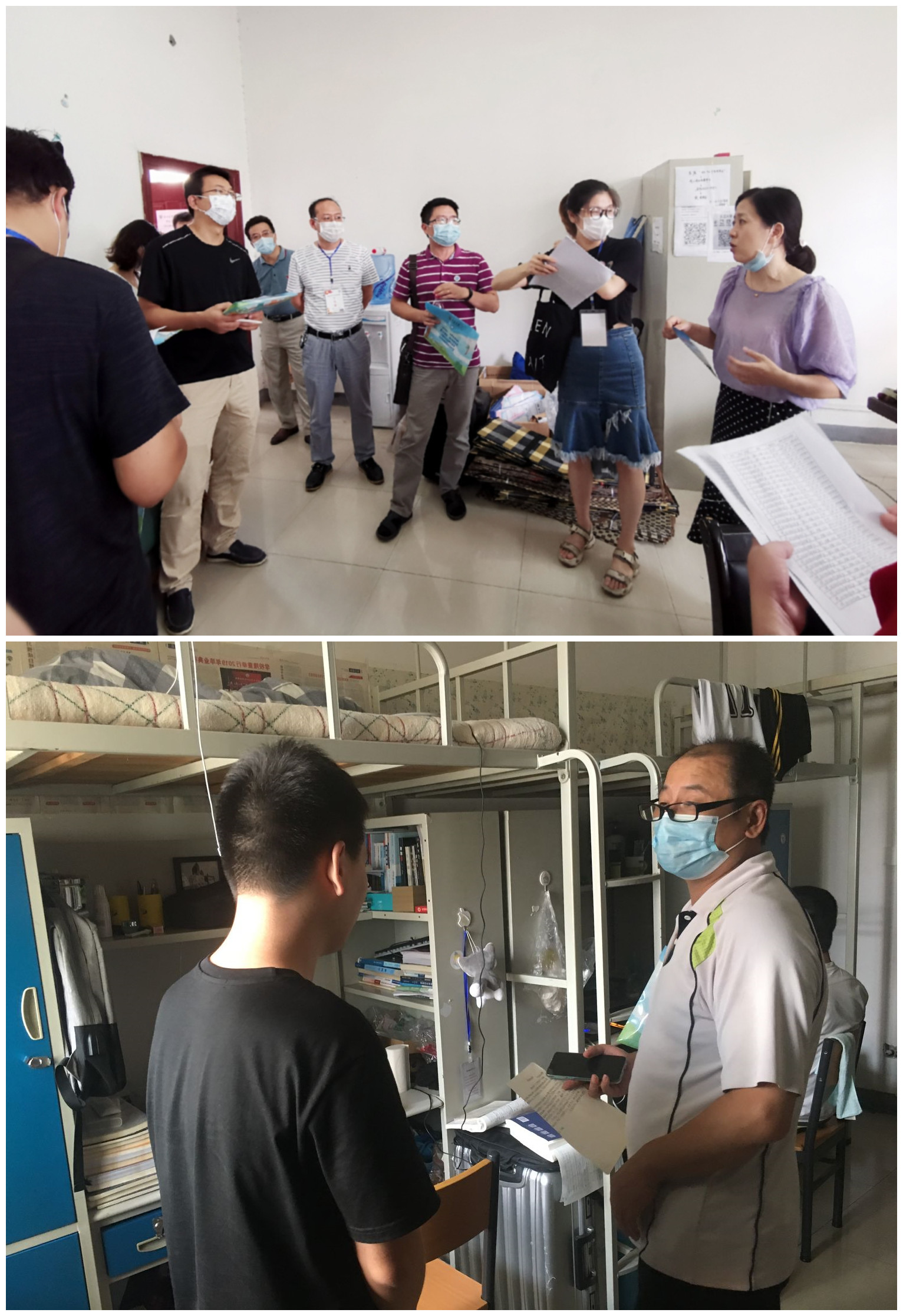 检查过程中,院领导和各位老师与同学们进行了亲切交流,对同学们的身体状况、思想状况、学习情况和生活近况进行了细致了解。老师们在检查过程中,不断叮嘱同学们:一是疫情防控不可松懈,坚持每天测量体温,异常情况要第一时间报告;二是宿舍要多通风、勤洒扫,良好的宿舍环境是健康的提前;三是科学使用空调,开空调睡觉盖好被子,谨防着凉;四是希望同学们严格遵守学校管控三阶段的规定,既是对自己负责,也对他人及社会负责。老师们还对同学们上网课情况进行了详细询问。同学们纷纷表示,重返阔别了8个月的校园,今天能在宿舍和老师交流,觉得特别温馨。