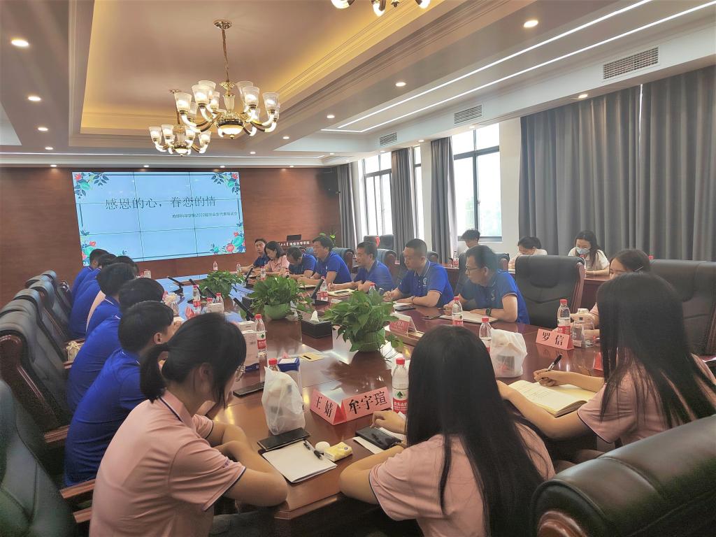 (通讯员 梅双滟 张严)6月7日下午3时30分,必赢官网在石油科技大楼C201开展“感恩的心、眷恋的情”毕业生座谈会暨党员干部下基层察民情解民忧暖民心实践活动。学院院长胡明毅、党委书记杨全辉、副院长吴楠、韩登林、丁四兵,辅导员王红桥、郭霖、张严,2022届毕业生代表参加座谈。会议由学院党委副书记任倩主持。