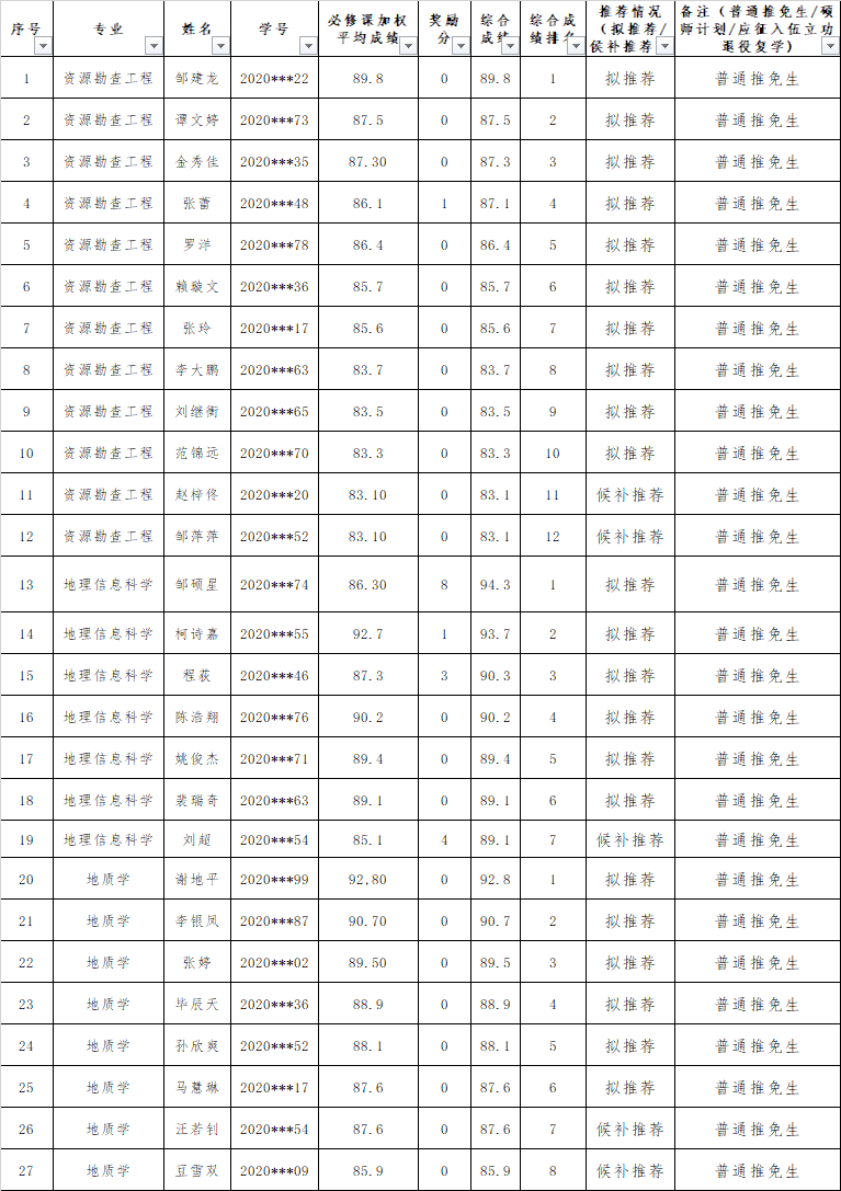 根据《必赢242net官网推荐优秀应届本科毕业生免试攻读硕士学位研究生管理办法(试行)》(长大校发〔2020〕106号)、《关于做好推荐2024届优秀本科毕业生免试攻读硕士学位研究生后续工作的通知》和《必赢242net官网推荐2024届优秀本科毕业生免试攻读硕士学位研究生名额分配方案》,结合学院实际,经学生本人申报,学校相关部门和学院资格审核,学院推免生遴选工作小组审议通过,现将必赢官网拟推荐2024届优秀本科毕业生免试攻读硕士学位研究生按照学院总名额的1.2倍人数进行公示。在公示期间,若拟推荐推免生不符合条件或放弃推免资格,由候补推荐人选依序递补。公示时间:2023年9月18日至2023年9月20日17:00。