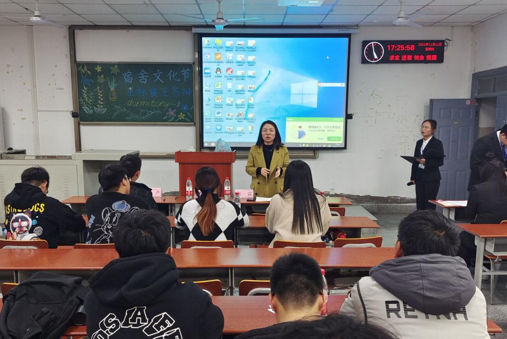 经过各个寝室的精彩介绍之后,由郭霖老师进行总结讲话。郭老师说:“在大学中,生活好是第一位的,宿舍建设显得尤为重要,搞好寝室积极向上的氛围,可以延伸到班级、学院,乃至到专业当中,希望所有同学能够共同进步!”