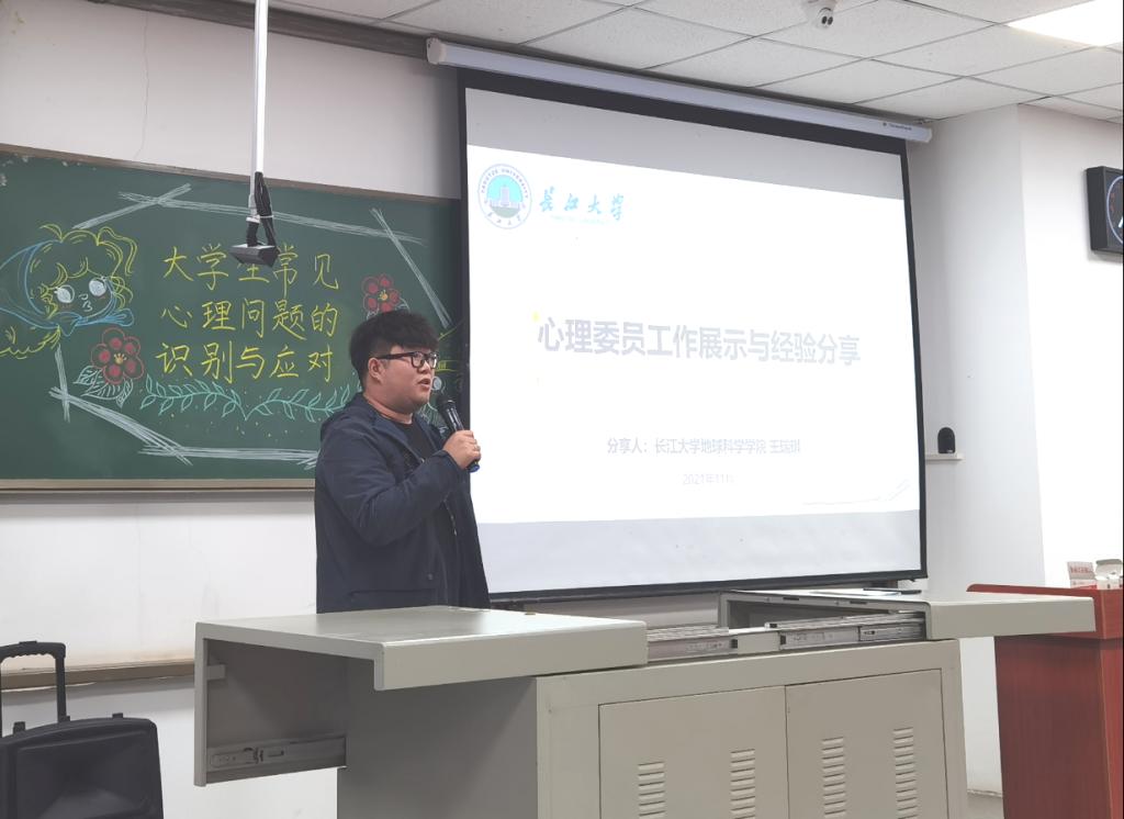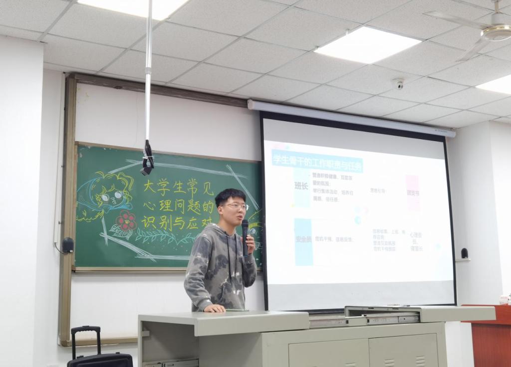 王瑞琪与任友志同学分别从心理委员的角色与工作体会、坚守生命热线助力危机干预的经验中,再次强调了心理健康的重要性,并勉励同学们承担起作为心理骨干的责任和担当,做同学们的“知心人”、“守护者”。“发现并为需要帮助的人提供帮助是我的使命。”任友志这么说到。