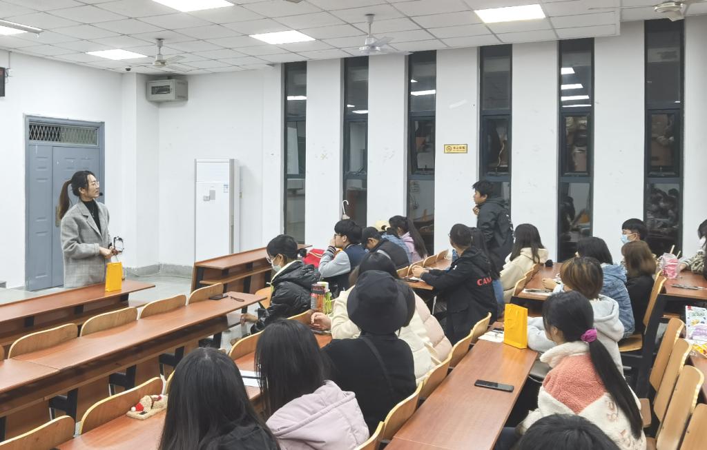 讲座伊始,王老师通过现场抢答与同学们互动,在抢答中,大家知道了“心理中心生命热线号码”、“心理咨询不等于思想教育”等常识。随后王老师讲解了大学生面对的五类主要心理问题及表现,并用案例告诉干部们,在态度上要积极主动的“撩”遍全班,在行动上要善于观察、学会倾听、怀着同理心。她还提醒大家在关注同学们身心健康的同时,要避免走入“共情过度”的误区。学会善用学校资源,对于状态不佳,可能有“抑郁症”等心理疾病的同学,与其自己保密“硬撑”,不如及时推荐到心理中心,方可真正让同学获得专业帮助。